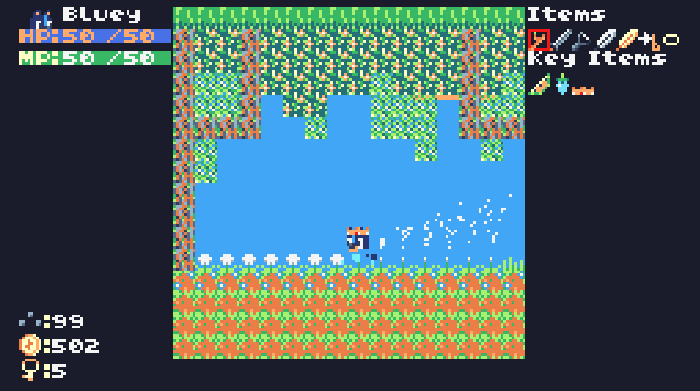 In this fangame, Bluey finds herself lost in a strange world full of puzzles and monsters. Inspired by games like The Legend of Zelda, Super Metroid, and Cave Story, the player must navigate a vast world to find items that will make them stronger and open new areas.